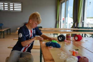 Nun kam die liebe Cathy an die Reihe – sie hat für die Kinder kreative Workshops vorbereitet. Mit einer Stempelkarte konnten die Kinder nun von einem Workshop zum anderen gehen. Die Kinder hatten die Möglichkeit zu batiken, Armbänder und Traumfänger zu basteln, Badekugeln herzustellen, aber auch den schon bekannten Clubtanz zu lernen. Diesen präsentierten die beiden Hummels. Auch der Sport kam am Nachmittag nicht zu knapp – Basketbälle von verschiedenem Abstand werfen oder Fußball spielen stand auch auf dem Programm.
