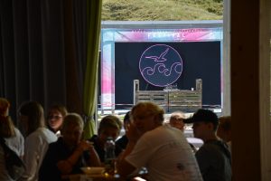 Nach dem Abendessen ging das Abendprogramm los. Dafür trafen sich alle Kinder und Festival- Mitarbeitende vor der großen Festivalbühne, wo zunächst die Kinder noch einmal willkommen geheißen wurden. Außerdem erzählten Zille und Emma, dass vor einigen Jahren schon mal ein Festival auf dem Zeltplatz stattfand und dieses so großartig war sodass sie mit den Kindern auch so ein tolles Festival erleben wollen. Nachdem das Küchenteam, die Special- Unit (SU), die Freizeitleitung und zum Schluss auch alle Betreuer vorgestellt wurden, konnte es endlich mit dem Abendprogramm losgehen.