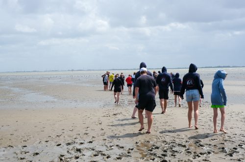 Unterwegs warteten kleine Überraschungen: An einigen Stellen wurden wir erschreckt, es gab eine Getränkestation und sogar eine Sonnentanzstation am Leuchtturm – mit niemand Geringerem als Anna und Elsa!